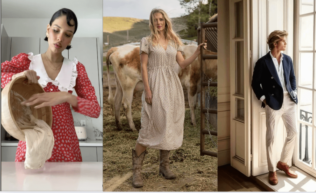 Two notable examples that have rapidly risen to fame this year would be influencers Nara Smith and Ballerina Farms. Nara Smith, a 23 year old German model and mother of 3, has garnered over 10 million followers on TikTok by showcasing her feminine family-centric lifestyle. She posts daily recipes, often dressed in elaborate, vintage-inspired dresses, her ultra-soft voice adding a layer of nostalgic charm that brings traditional homemaking to life. Her posts reflected an appreciation of motherhood and domestic work – a shift away from the once popular “working-woman” content to a focus on family values.